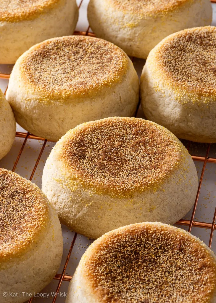 Cool: Remove rings. Cool completely, then split with a fork for that classic nooks-and-crannies texture.