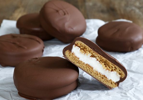 Here’s a from-scratch, gluten-free Moon Pie recipe — soft marshmallow filling sandwiched between tender cookie rounds and coated in rich chocolate. These taste just like the classic, only gluten-free!