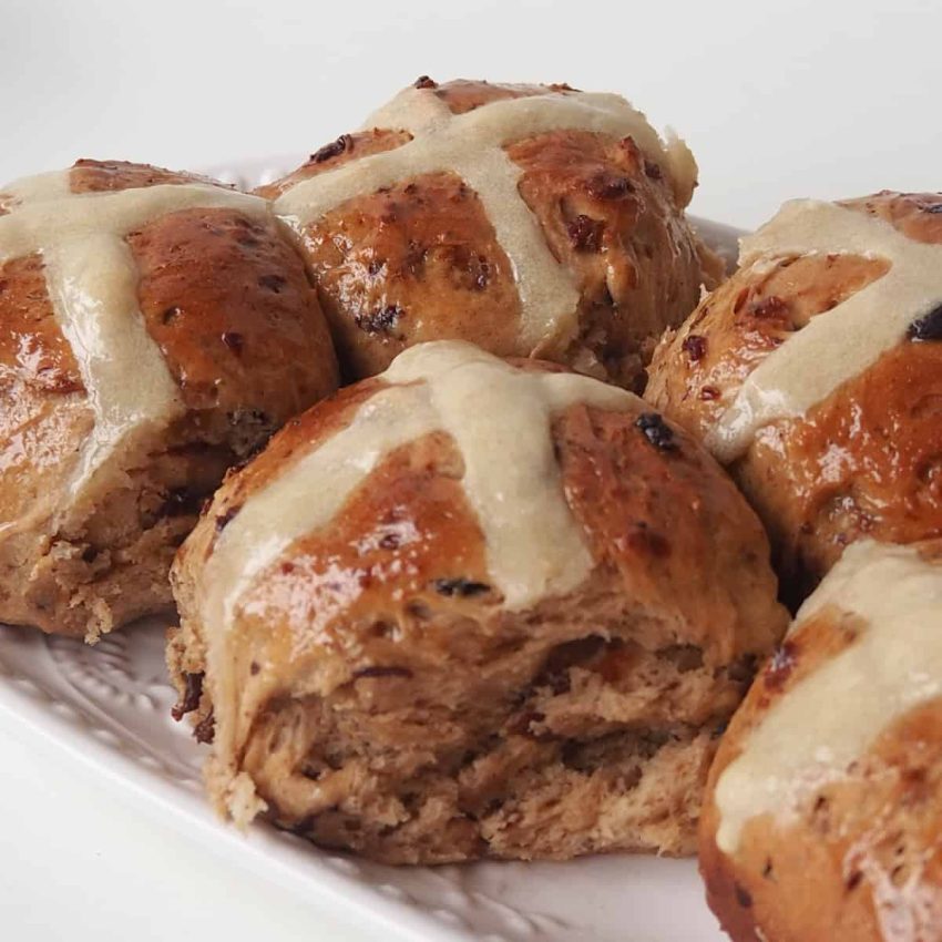 • Brush the glaze over the still hot Hot Cross Buns before carefully transferring the buns to a wire rack to cool.